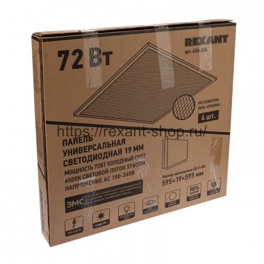 Rexant Панель универсальная светодиодная REXANT 19 мм ПРИЗМА 595x595 72 Вт 180–260 В IP20 6400 Лм 6500 K, 606-004