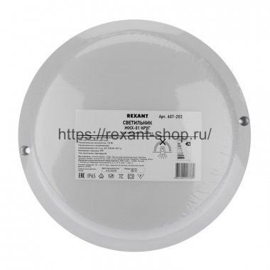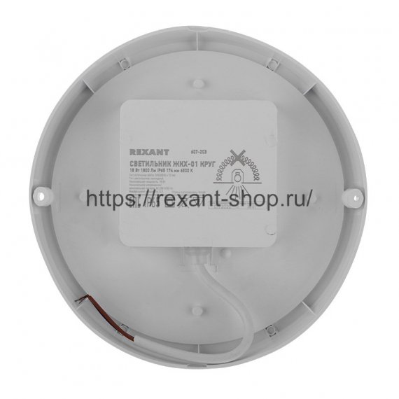 Светильник REXANT серии ЖКХ оснащен источником света типа SMD2835 с номинальной мощностью 18 Вт и световым потоком 1800 Лм.