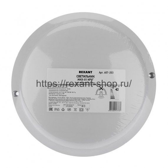 Вандалозащищенный накладной светильник REXANT серии ЖКХ предназначен для освещения прилегающих территорий, переходов, подсобных помещений и входных групп.