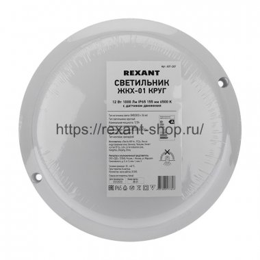 Светильник светодиодный пылевлагозащищенный REXANT ЖКХ-01 круг 12 Вт 1000 Лм IP65 155 мм 6500 K с микроволновым датчиком движения