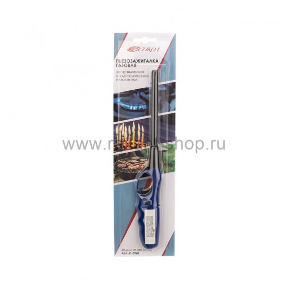 Бытовая газовая пьезозажигалка с классическим пламенем, многоразовая (1 шт.) синяя СК-302L СОКОЛ