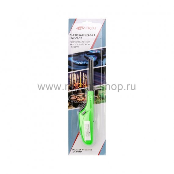Бытовая газовая пьезозажигалка с классическим пламенем многоразовая (1 шт.) зеленая СК-306 СОКОЛ