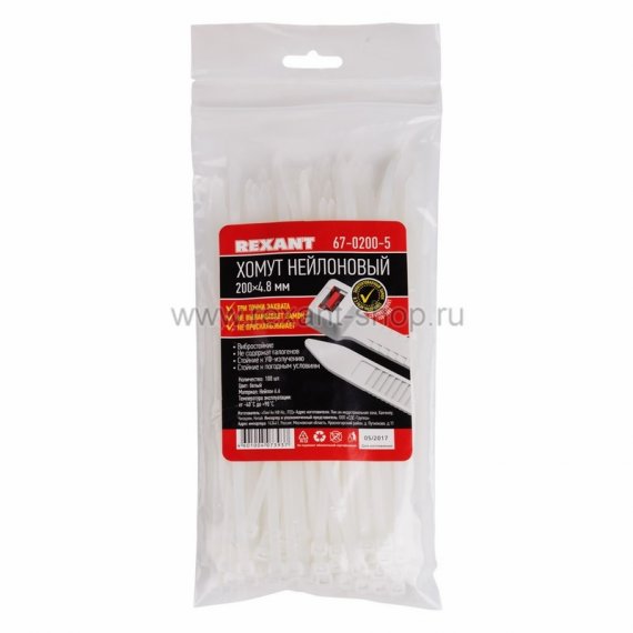 Хомут нейлоновый (кабельная стяжка) 200 х 4,8 мм белый "Тройной замок" предназначен для крепления или обвязки в жгут кабелей и проводов, крепления гибких гофротруб, а также других предметов к несущей поверхности или для соединения между собой. Используется при проведении электромонтажных работ, при монтаже структурированных кабельных систем, для бытовых нужд, а также в других отраслях народного хозяйства.