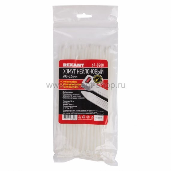 Rexant Хомут nylon "Тройной замок" 200 x 3,6 мм 67-0200
