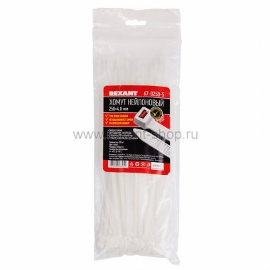 Хомут nylon "Тройной замок" 250 x 4,8 мм 100 шт белый REXANT