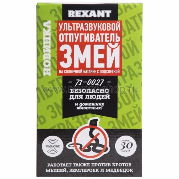 Ультразвуковой отпугиватель на солнечной батарее REXANT предназначен для борьбы со змеями и другими животными, такими как: кроты, землеройки, полевые мыши, медведки. Отпугиватель REXANT способен создавать вибрацию, которая предупреждает животных об опасности и способствует их скорейшему исчезновению. Так же отпугиватель имеет встроенный фонарик и может избавить от животных чувствительных к свету. Устройство безопасно для людей и домашних животных, не содержит химикатов.
