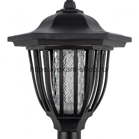 Антимоскитный садовый светильник сочетает сразу два устройства в одном: уничтожитель летающих насекомых и светильник для подсветки газонов, цветников и дорожек. Принцип действия электрического уничтожителя насекомых (комаров, мошкары) – основан на использовании ультрафиолетового излучения в специальном диапазоне (350-400 нм). Многие летающие насекомые весьма чувствительны к данному диапазону УФ-излучения и он привлекает их. Подлетая к лампе, насекомые замыкают собой прутья металлической решетки под напряжением и погибают от электрического разряда. Решетка защищена от случайного прикосновения, поэтому устройство безопасно для человека и домашних животных.