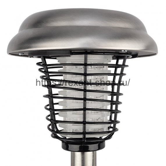 Антимоскитный садовый светильник сочетает сразу два устройства в одном: уничтожитель летающих насекомых и светильник для подсветки газонов, цветников и дорожек. Принцип действия электрического уничтожителя насекомых (комаров, мошкары) – основан на использовании ультрафиолетового излучения в специальном диапазоне (350-400 нм). Многие летающие насекомые весьма чувствительны к данному диапазону УФ-излучения и он привлекает их. Подлетая к лампе, насекомые замыкают собой прутья металлической решетки под напряжением и погибают от электрического разряда. Решетка защищена от случайного прикосновения, поэтому устройство безопасно для человека и домашних животных.