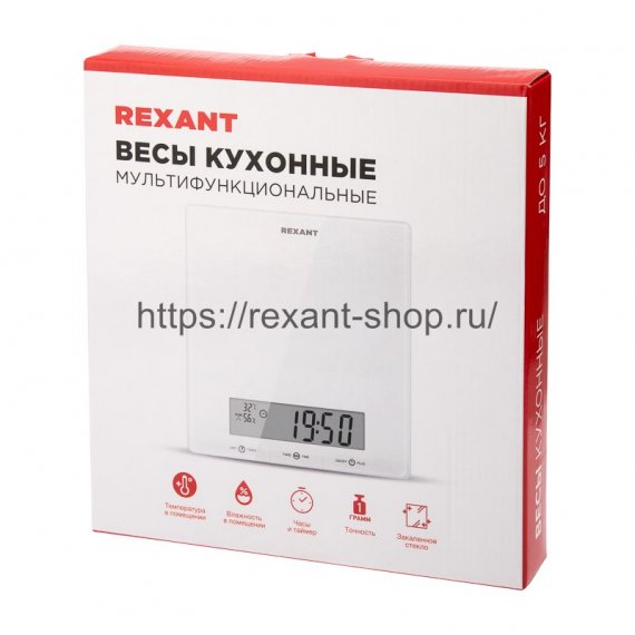 Весы кухонные электронные мультифункциональные, белые/стекло/до 5 кг REXANT