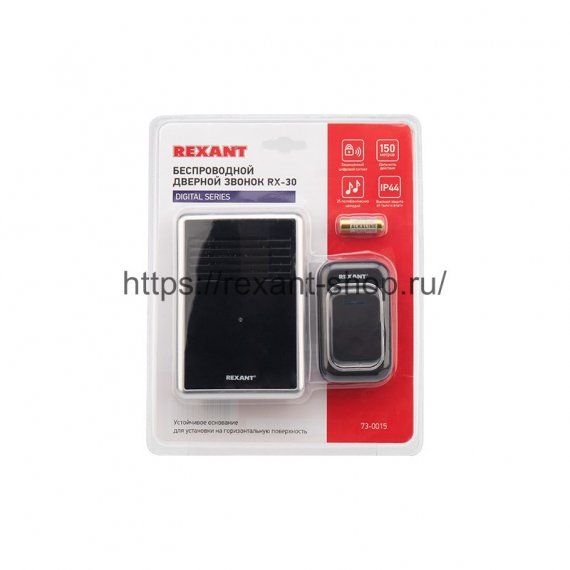 Звонок беспроводной c цифровым кодированием, влагозащищенной кнопкой IP44 и регулировкой громкости RX-30 REXANT