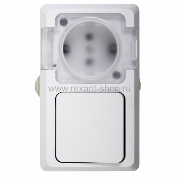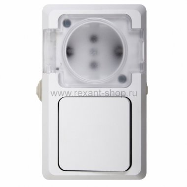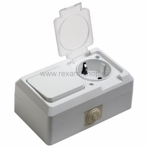 Rexant Выключатель одноклавишный + розетка влагозащищенная для открытой установки 78-0517