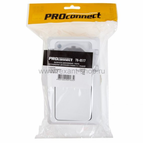 Выключатель одноклавишный + розетка влагозащищенная для открытой установки,с\з ,с крышкой,10 А,IP 44 PROCONNECT