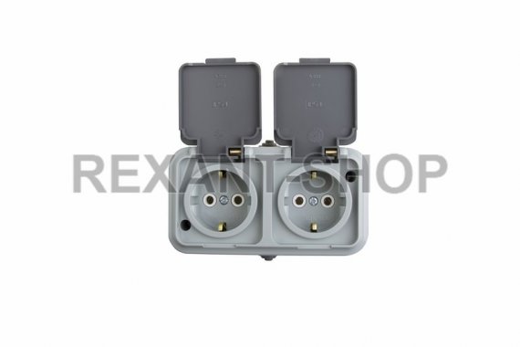 Розетка штепсельная двухместная с заземляющим контактом влагозащищенная для открытой установки Rexant IP 54