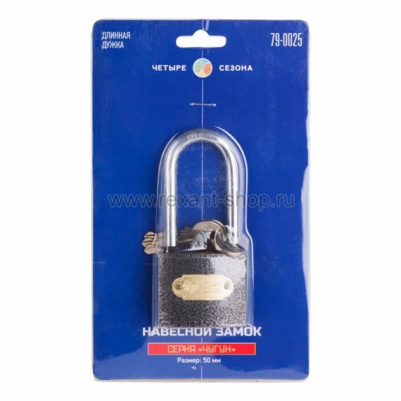 Замок навесной серия чугун 50 мм длинная дужка Четыре Сезона