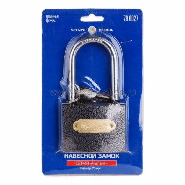 Замок навесной серия чугун 75 мм длинная дужка Четыре Сезона