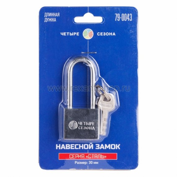 Замок навесной серия сталь 30 мм длинная дужка Четыре Сезона