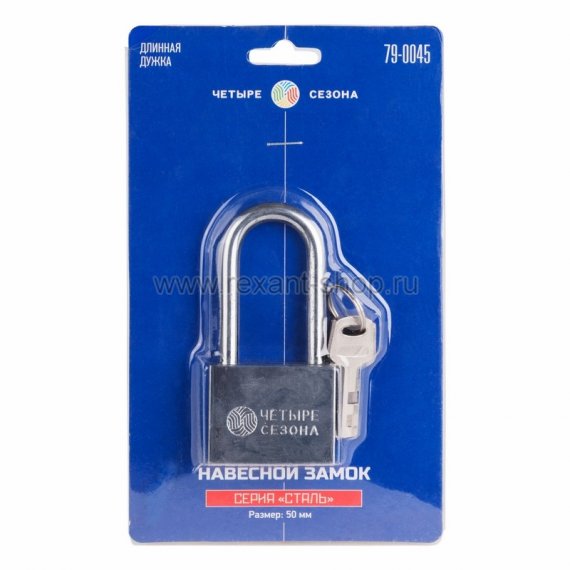 Замок навесной серия сталь 50 мм длинная дужка Четыре Сезона