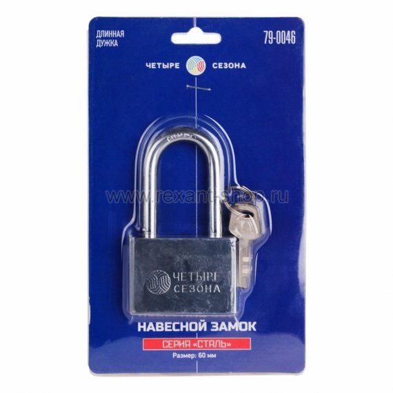 Замок навесной серия сталь 60 мм длинная дужка Четыре Сезона