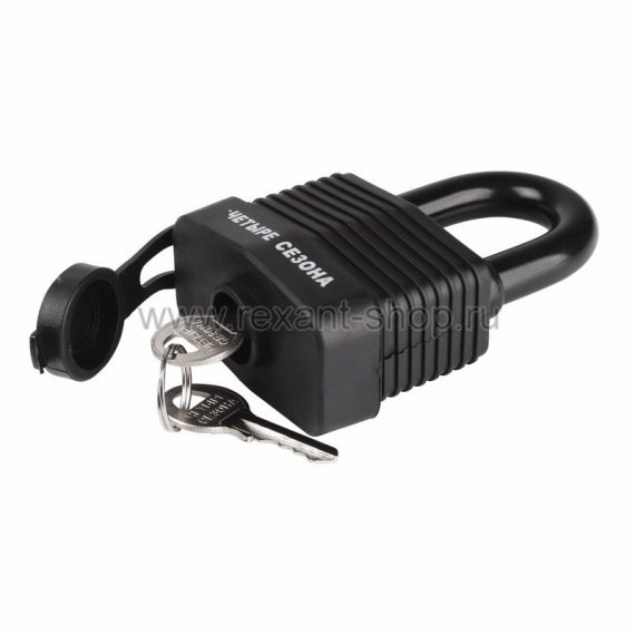 В комплекте с замком идет 3 ключа, поэтому при потере одного вам не нужно беспокоиться. Специальная прорезиненная оболочка препятствует проникновению влаги внурь механизмов замка.