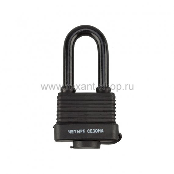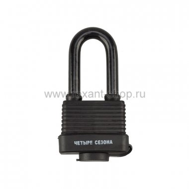 Специальная прорезиненная оболочка препятствует проникновению влаги внурь механизмов замка. Длинная дужка позволяет устанавливать замок в труднодоступных местах