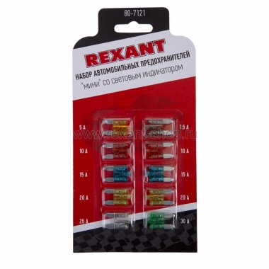 Набор автомобильных предохранителей "мини" со световым индикатором в блистере REXANT