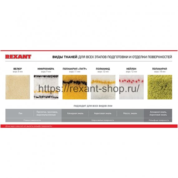 1) Шубка валика – универсальная ткань, которая подходит для всех видов ЛКМ, особенно хорошо подходит для пропиток, грунтовок, водоэмульсионных красок.