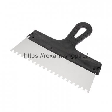 Rexant Шпатель фасадный REXANT 250 мм зуб 6х6 нержавеющая сталь, пластмассовая ручка, 89-0223
