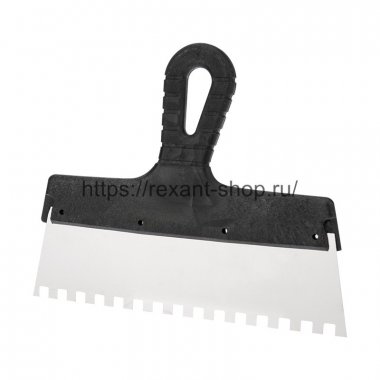 Rexant Шпатель фасадный REXANT 250 мм зуб 8х8 нержавеющая сталь, пластмассовая ручка, 89-0228