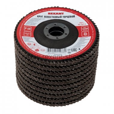 Круг лепестковый торцевой КЛТ 125х22 REXANT применяется с угловыми шлифовальными машинками (болгарка) соответствующего диаметра.