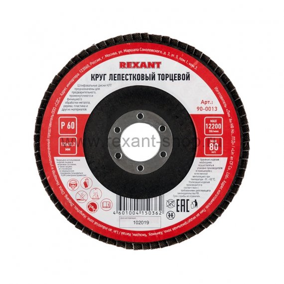 Круг лепестковый торцевой P 60, 125х22,2 мм REXANT