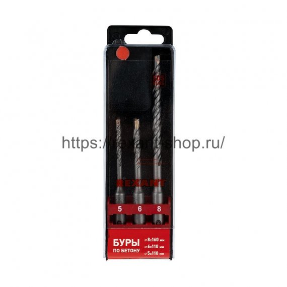 Набор буров по бетону 5х110, 6х110, 8х160 мм, 3 шт., в пластиковой коробке SDS PLUS REXANT.