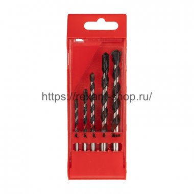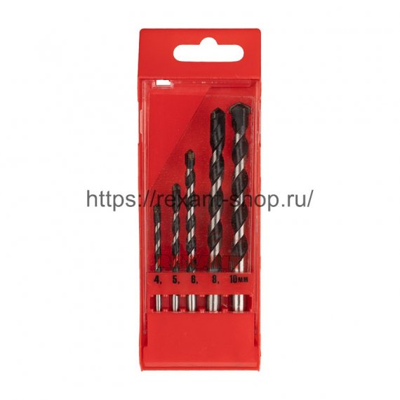 Набор сверл по бетону 4-5-6-8-10 мм, пластиковый кейс REXANT.