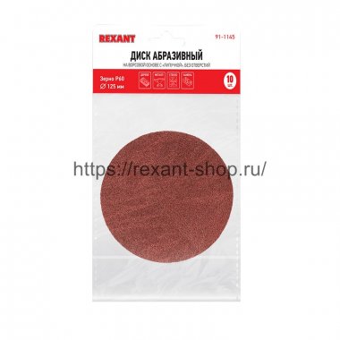 Диск абразивный на ворсовой основе на липучке, без отверстий, P 60, 125 мм, 10 шт. REXANT
