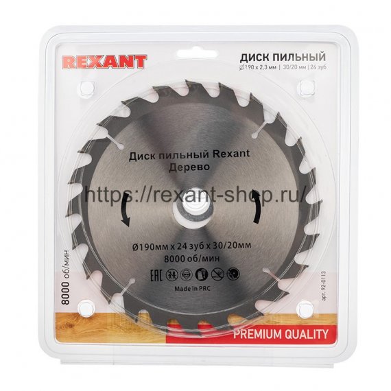 Rexant Диск пильный 190 мм х 24 зуб х 30/20 мм, 92-0113 Rexant 92-0113