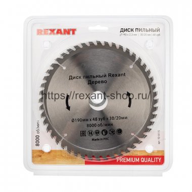 Rexant Диск пильный 190 мм х 48 зуб х 30/20 мм, 92-0115 Rexant 92-0115