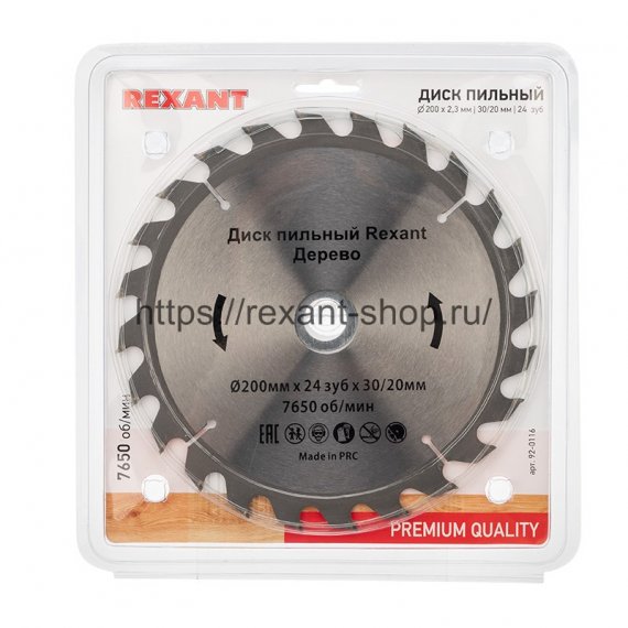 Rexant Диск пильный 200 мм х 24 зуб х 30/20 мм, 92-0116 Rexant 92-0116