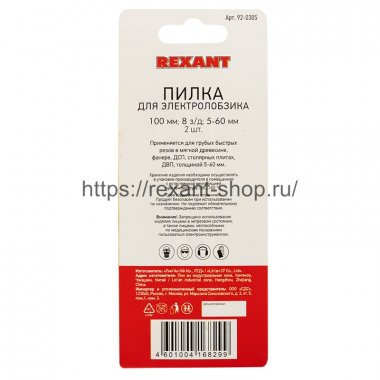 Rexant Пилка для электролобзика 100 мм 8 з/д 5-60 мм T111C, 92-0305
