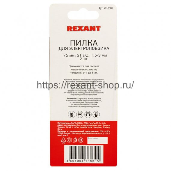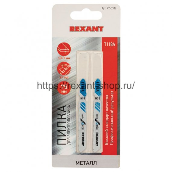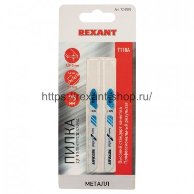 Rexant Пилка для электролобзика 75 мм 21 з/д 1,5-3 мм T118A, 92-0306