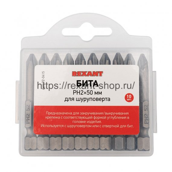 Бита PH2*50 мм для шуруповерта сталь S2 (упак. 10 шт.) REXANT