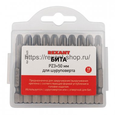 Бита PZ3*50 мм для шуруповерта сталь S2 (упак. 10 шт.) REXANT