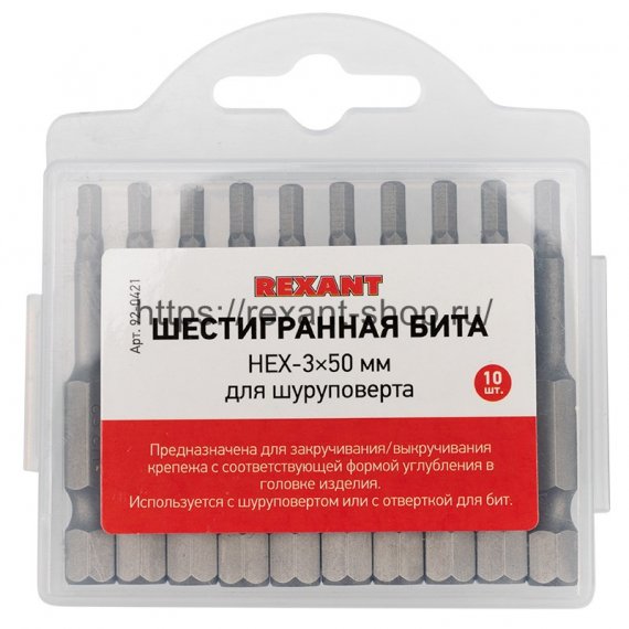 Rexant Бита шестигранная HEX-3*50 мм для шуруповерта сталь S2 , 92-0421 Rexant 92-0421
