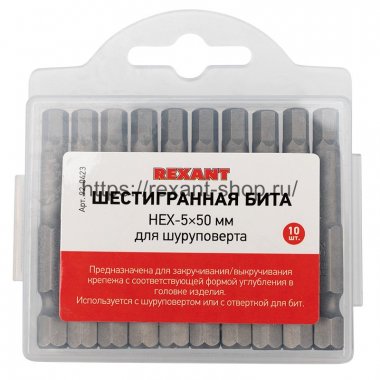 Rexant Бита шестигранная HEX-5*50 мм для шуруповерта сталь S2 , 92-0423 Rexant 92-0423