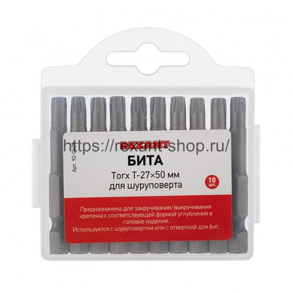 Бита Torx T-27*50 мм для шуруповерта сталь S2 (упак. 10 шт.) REXANT