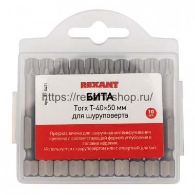 Бита Torx T-40*50 мм для шуруповерта сталь S2 (упак. 10 шт.) REXANT
