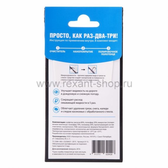 Rexant Супер Антидождь NANOPROTECH комплект салфеток для обработки автомобильного стекла NPAD0030 Rexant NPAD0030