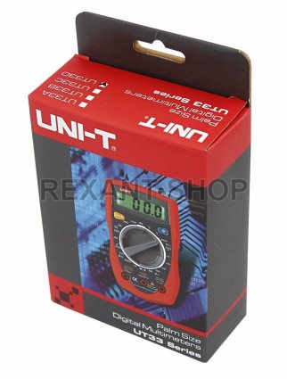 Мульти́метр UNI-T UT33D—электроизмерительный прибор который включает в себя несколько функций и набор измеряемых параметров. Все приборы серии UT-30 измеряют напряжение, сопротивление и ток в цепи. Прибор UT33D является портативным мультиметром, компактные размеры позволяют всегда носить его с собой. Но, несмотря на малые размеры, данный мультиметр обладает широким функционалом и это выгодно отличает его от других. С его помощью вы сможете измерить постоянное и переменное напряжение, постоянный ток и сопротивление. А так же с помощью данного прибора можно проводить тестирование диодов и осуществлять прозвонку целостности цепи. Еще одной отличительной особенностью данного прибора является функция генерирования прямоугольных сигналов (меандр), эта функция нужна для измерений и преобразований сигнала и в других областях. Инженеры старались сделать прибор максимально удобным для использования. Выбор измеряемых величин и пределов измерений производиться с помощью усиленного поворотного регулятора, благодаря которому исключается возможность случайного нажатия.Мультиметр UT33D оснащен функцией Data hold, и зафиксировав результат измерений, вы в любое время сможете считать полученный значение. Дисплей прибора оснащен подсветкой, которая позволяет проводить измерения даже в слабоосвещенных местах. Прибор изготовлен из высококачественных материалов и комплектуется защитным чехлом, который позволит избежать повреждений прибора от падений и царапин. Мультиметр снабжен подставкой, которая позволяет разместить прибор на любой плоской поверхности. Калибровка и тестирование приборов произведено под контролем компании REXANT INTERNATIONAL.